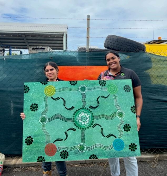 I would like to share an artwork that myself, Rebecca Oliver, Training Coordinator, Michele Tory, Training Coordinator, and one of our Traditional Owner (TO) Admin Trainees, Khyiesha Johnson, put together during our induction period here in Gladstone, Queensland.