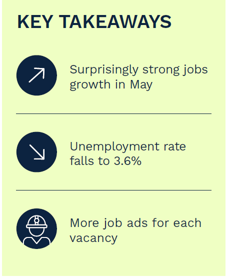 The labour market remains strong, with job vacancies and advertisements at high levels and the unemployment rate at a near 50-year low.